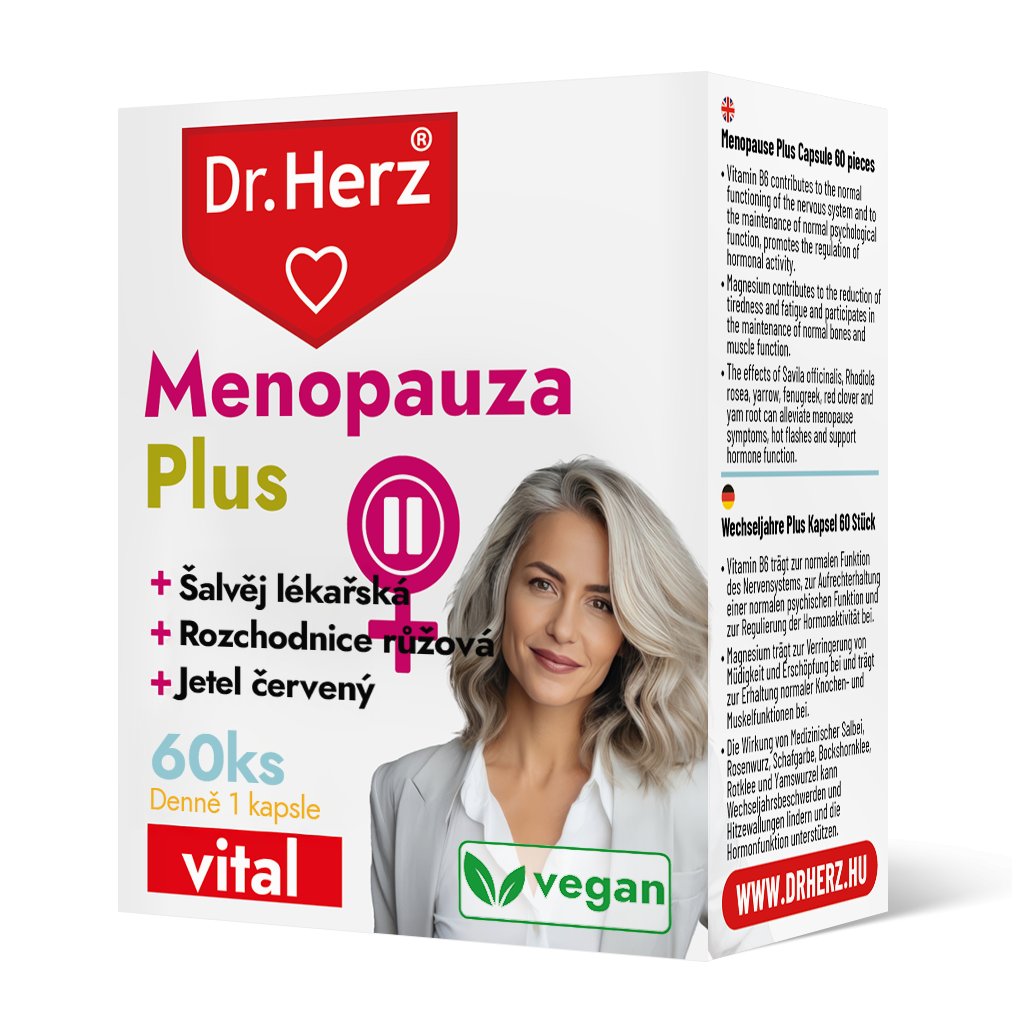 Menopauza je prirodzenou etapou v živote ženy, no často je spojená s fyzickým aj duševným diskomfortom. Návaly tepla, nočné potenie, podráždenosť alebo únava sú častými príznakmi hormonálnej nerovnováhy. Prípravok Dr. Herz Menopauza Plus ponúka prirodzenú podporu vďaka kombinácii tradičných bylín s modernou výživovou vedou. Fytoestrogény obsiahnuté v ďateline a yame pomáhajú vyrovnávať hladinu estrogénu, zatiaľ čo magnézium a vitamín B6 stabilizujú nervový systém. Tento produkt je vhodný pre ženy, ktoré hľadajú neinvazívne riešenie menopauzálnych symptómov bez hormonálnej substitučnej terapie.