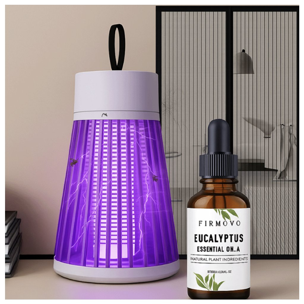 Esenciálny olej z citronely pôsobí ako prírodný repelent – vhodný do difuzéra, zvlhčovača aj na priamu aplikáciu. USB lampa s UV svetlom bezhlučne pritiahne a zachytí hmyz bez zápachu či dymu. Magnetická sieť na dvere vytvorí fyzickú bariéru a zároveň umožní voľné prúdenie vzduchu.