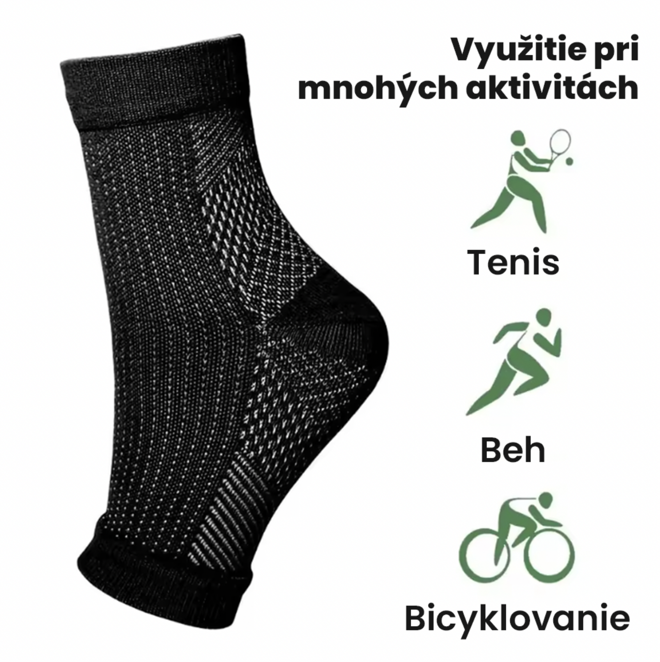 Plantárna fasciitída je častý problém spôsobený nadmerným zaťažením päty a klenby nohy. Jedným z najjednoduchších a najúčinnejších riešení je pravidelné nosenie kompresných ponožiek. Tie zabezpečujú rovnomerné rozloženie tlaku, čím znižujú bolestivé podráždenie spojivového tkaniva v chodidle. Okrem toho kompresný efekt zlepšuje krvný obeh, urýchľuje regeneráciu a zmierňuje zápaly. Tieto ponožky sú vhodné nielen pre ľudí s diagnózou, ale aj ako prevencia pre športovcov, pracovníkov v stoji alebo rekreačných bežcov. Vďaka ich nenápadnému dizajnu ich možno nosiť v akejkoľvek obuvi počas celého dňa bez straty komfortu.