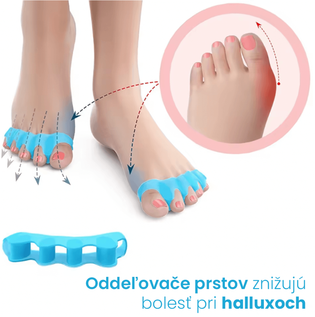 Moderný životný štýl, dlhé státie, nevhodná obuv či sedavé zamestnanie často vedú k bolestiam chodidiel, vbočeným palcom a deformáciám prstov. Silikónové oddeľovače SoftTouch sú nenápadným a účinným riešením, ako týmto problémom predchádzať alebo ich zmierniť. Vďaka pružnému a mäkkému materiálu sú vhodné aj pre citlivé chodidlá a pokožku. Ich používanie je pohodlné počas odpočinku, spánku alebo rehabilitácie a prispieva k lepšiemu postaveniu prstov, rovnováhe tela a celkovému komfortu pri chôdzi.