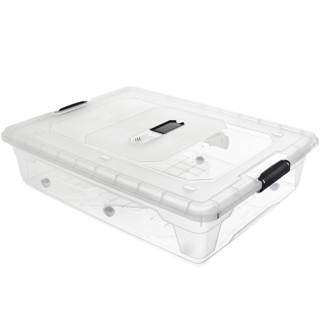 ORION box MULTI 55 l je ideálnym riešením pre efektívne a prehľadné skladovanie rôznych predmetov v domácnosti. Jeho nízky profil umožňuje využitie priestorov pod posteľou alebo v nízkych skrinkách. Vďaka kolieskam ho jednoducho presuniete aj pri plnej kapacite. Praktický ventil vo veku zaručuje odvetrávanie a pomáha predchádzať zatuchnutiu alebo kondenzácii, čo je ideálne napríklad pri uložení textilu. Spoľahlivé klipy zabezpečujú pevné zatvorenie a ochranu pred prachom. Všestranný pomocník pre poriadok vo vašej domácnosti.