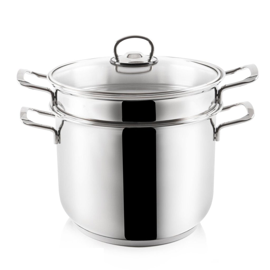 Tento hrniec ORION ANETT 6 l je ideálny na varenie cestovín, zeleniny, parenie knedlí aj prípravu ľahkých parených jedál. Jeho hlavnou výhodou je kombinácia klasického hrnca s hlbokou parnou vložkou, vďaka ktorej zvládne aj prípravu jedál v pare bez potreby špeciálneho parného hrnca. Sklenená pokrievka s otvorom umožňuje regulovaný odvod pary a priebežnú kontrolu varenia. Vďaka sendvičovému dnu je varenie rýchle, rovnomerné a energeticky úsporné. Tento model je nielen výkonný, ale aj odolný vďaka nerezovej oceli 304, ktorá je známa svojou kvalitou a dlhou životnosťou. Hrniec je univerzálne použiteľný na všetkých typoch varných plôch, vrátane indukcie.