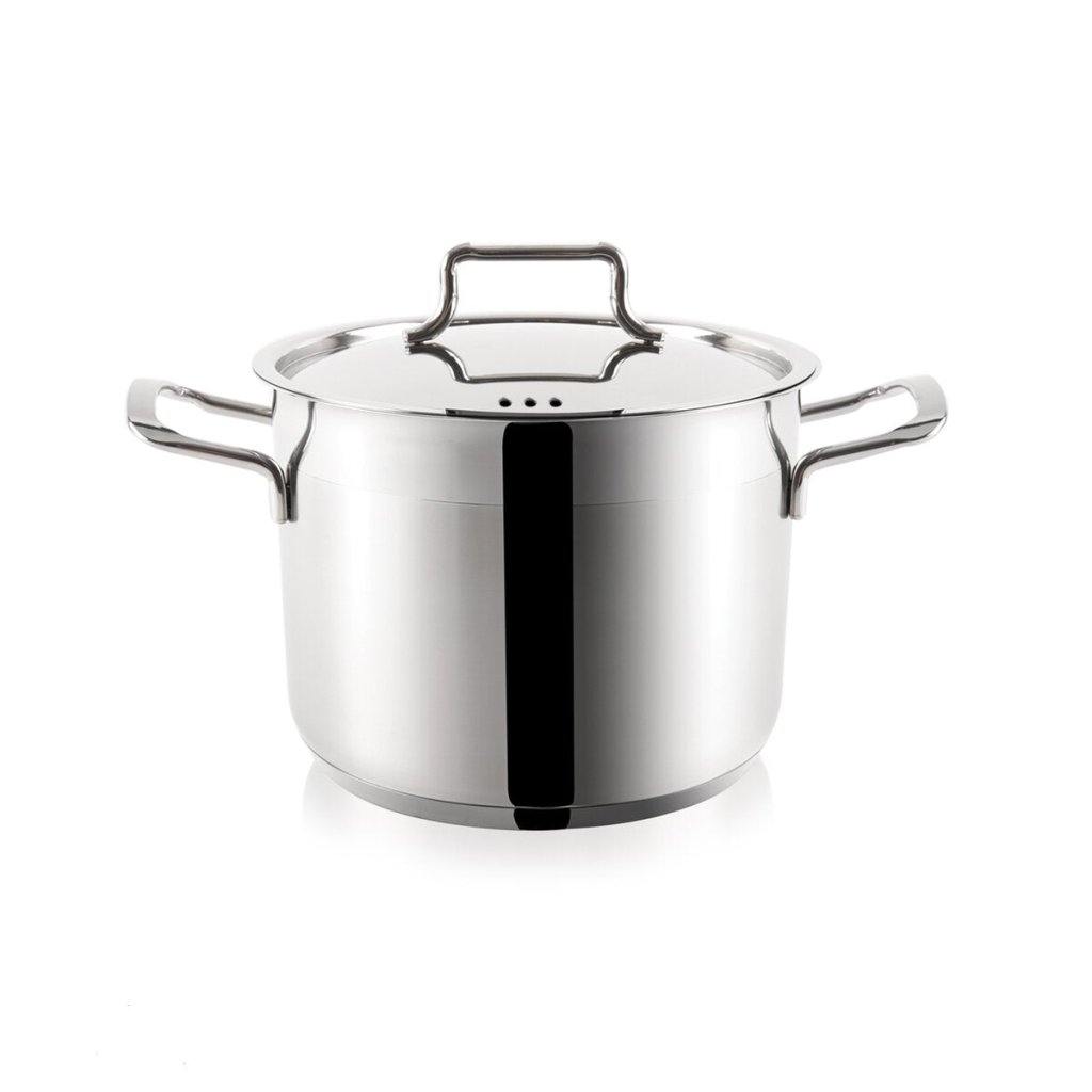 ORION Anett 8,1 l je navrhnutý pre náročných používateľov, ktorí potrebujú variť vo veľkom a efektívne. Vďaka objemu 8,1 litra je ideálny na prípravu polievok, vývarov, omáčok či dusených jedál pre viacčlenné domácnosti alebo na rodinné oslavy. Kvalitná nerezová oceľ 304 zaručuje hygienu, dlhú životnosť a zachovanie prirodzenej chuti potravín. Sendvičové dno rovnomerne rozvádza teplo a umožňuje variť energeticky úsporne. Hrniec môžete používať na všetkých typoch varných dosiek, vrátane indukcie, a bez obáv ho vložiť aj do rúry či umývačky. Nerezová pokrievka s odvetraním zabezpečuje optimálnu kontrolu pary počas varenia, čím sa minimalizuje kondenzácia a pokrmy ostávajú lahodné a šťavnaté.