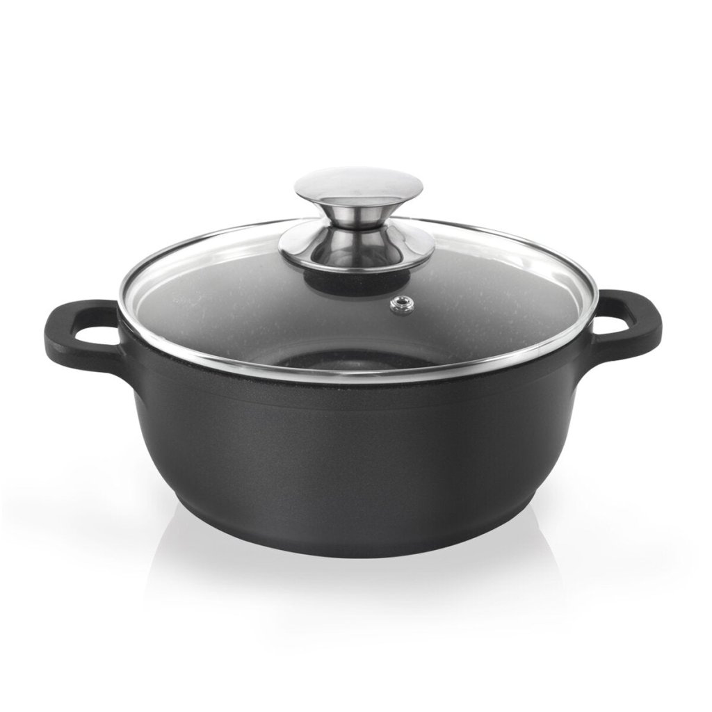 Jeho najväčšou výhodou je vysoko kvalitný povrch PFLUON GRANIT, ktorý zabezpečuje varenie bez pripálenia aj pri nízkom množstve tuku. Hrniec je vyrobený z odolného hliníka, čo zaručuje rovnomerné rozloženie tepla a efektívnu prípravu jedál. Navyše je vhodný na všetky typy sporákov – od plynových až po indukčné – a vďaka tepelnej odolnosti je ideálny aj na použitie v rúre.