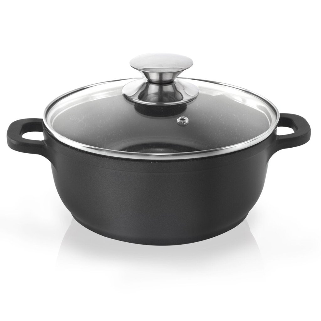 Tento model sa pýši odolným hliníkovým telom s profilovaným dnom, ktoré zabezpečuje rýchle a rovnomerné rozloženie tepla. Vnútorný nepriľnavý povrch PFLUON GRANIT zaručuje, že sa jedlo nepripáli a ľahko sa udržiava čisté. Hrniec je navrhnutý pre všetky druhy sporákov vrátane indukcie, čo z neho robí flexibilného pomocníka do každej kuchyne. Sklenená pokrievka s otvorom na paru podporuje efektívne varenie bez zbytočnej kondenzácie.