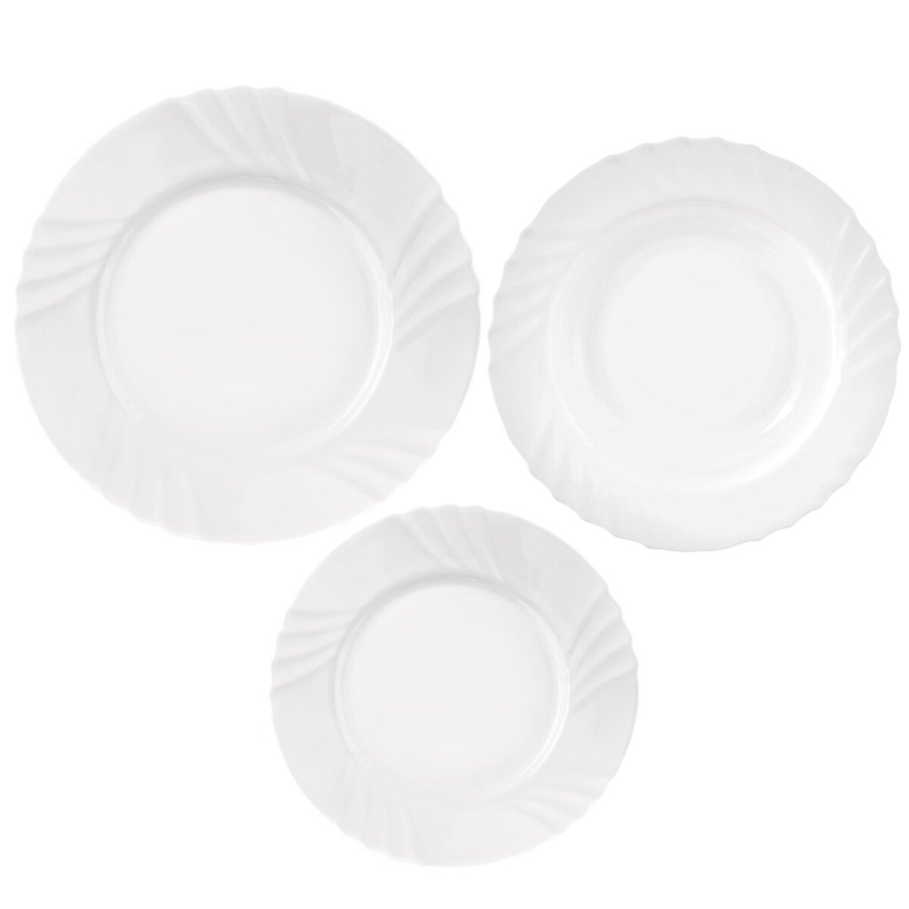 Súprava obsahuje všetko potrebné pre plnohodnotné stolovanie – dezertné, hlboké a plytké taniere v rovnakom štýle s decentným vlnkovým okrajom, ktorý pridáva na estetike prestierania. Vhodnosť do umývačky a mikrovlnnej rúry robí z tejto súpravy ideálneho spoločníka na každý deň.