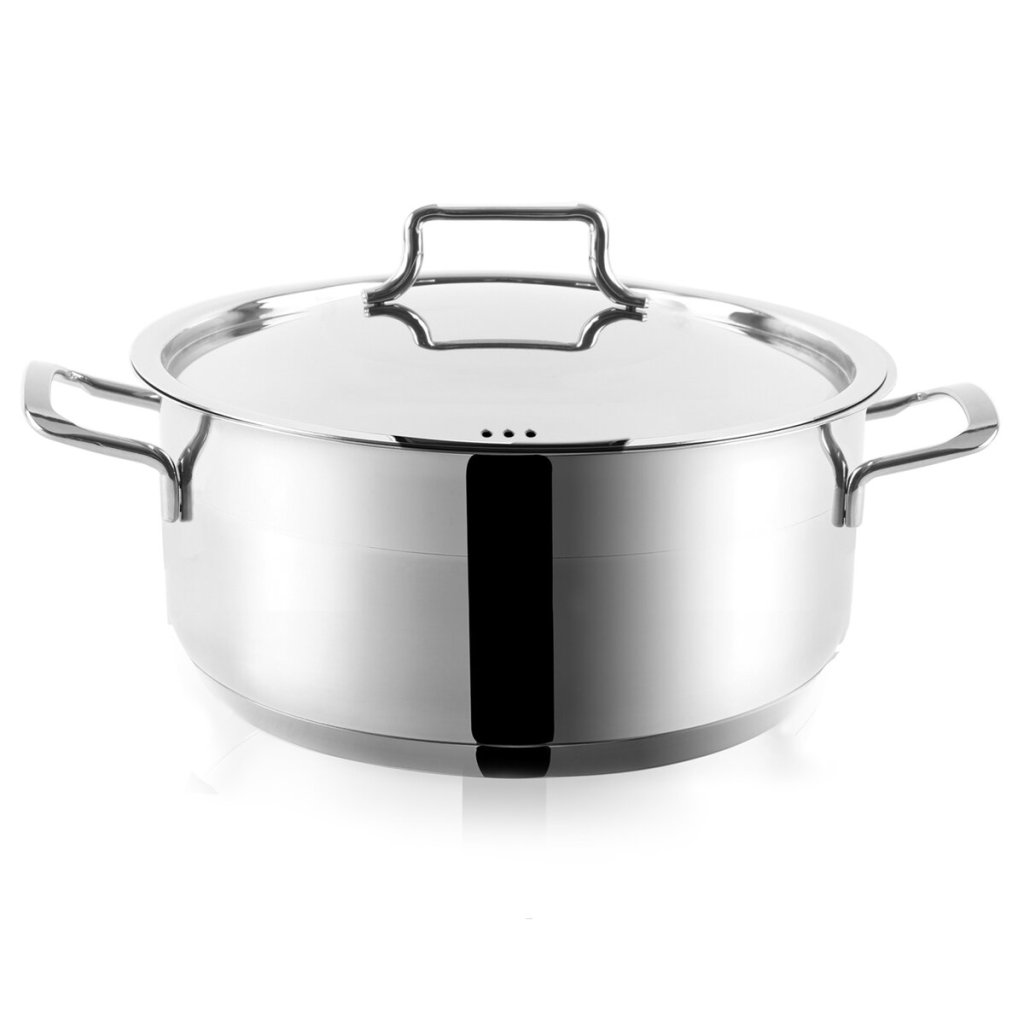 Kvalitná nerezová oceľ triedy 304 zaručuje odolnosť voči korózii, zachovanie chuti potravín a ľahkú údržbu. Pokrievka s ventilačnými otvormi zvyšuje komfort pri varení a znižuje riziko pretečenia. Efektívne sendvičové dno zabezpečí rovnomerné teplo aj pri väčšom objeme, čo ocení každý, kto nechce strácať čas neefektívnym ohrevom.