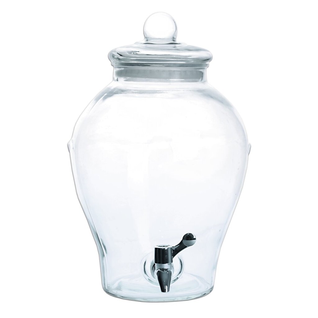 Nápoj sa dávkuje pohodlne cez kohútik s otočnou páčkou, ktorá umožňuje plynulé otvorenie a zatvorenie. Sklenená nádoba je vhodná na ovocné limonády, bylinkové vody, bowle aj nealkoholické miešané drinky. Široké hrdlo umožňuje pohodlné plnenie aj vkladanie väčších kúskov ovocia či ľadu.