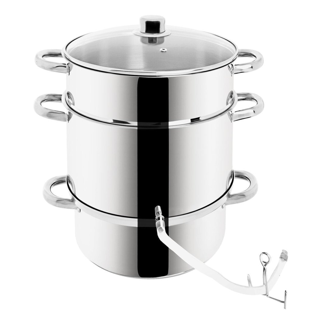 Ak hľadáte tradičný spôsob spracovania ovocia bez použitia elektrických prístrojov, odšťavovací hrniec ORION 8 l je presne to, čo potrebujete. Vďaka systému parného odšťavovania získate čistú, koncentrovanú šťavu bez nutnosti lisovania alebo drvenia. Tento spôsob zachováva maximum prirodzenej chuti a je ideálny na výrobu sirupov, želé, džemov a domácich nápojov. Vypúšťacia hadička zabezpečí jednoduché napĺňanie fliaš bez neporiadku. Nerezové prevedenie zaručuje dlhú životnosť a hygienu. S týmto odšťavovacím hrncom ORION premeníte úrodu ovocia na chutné zásoby jednoducho a efektívne.