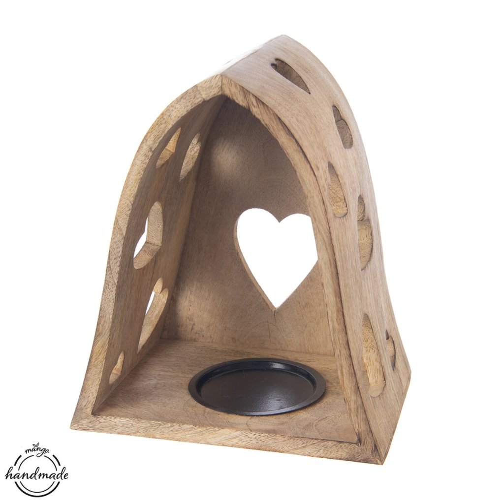 Sviečky majú od nepamäti silu vytvárať atmosféru pokoja, intimity a pohody. Tento drevený svietnik so srdiečkami vnáša do interiéru láskavé svetlo a originálny svetelný efekt. Vďaka výrezom v tvare sŕdc sa po zapálení sviečky premietajú krásne tiene, ktoré dodávajú priestoru jedinečný ráz.