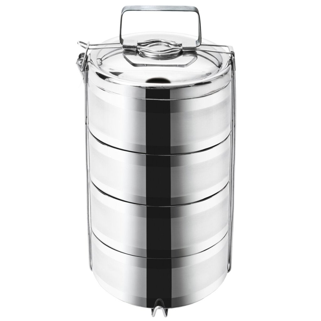 Tento praktický viacposchodový termo jídlonosič je určený pre každého, kto si chce vziať viacero chodov naraz – teplých aj studených – a udržať ich v optimálnej teplote po dlhší čas. 4 samostatné nerezové nádoby, každá s objemom 1,1 litra, ponúkajú dostatok priestoru na hlavný chod, prílohu, polievku aj dezert – bez miešania vôní a chutí.