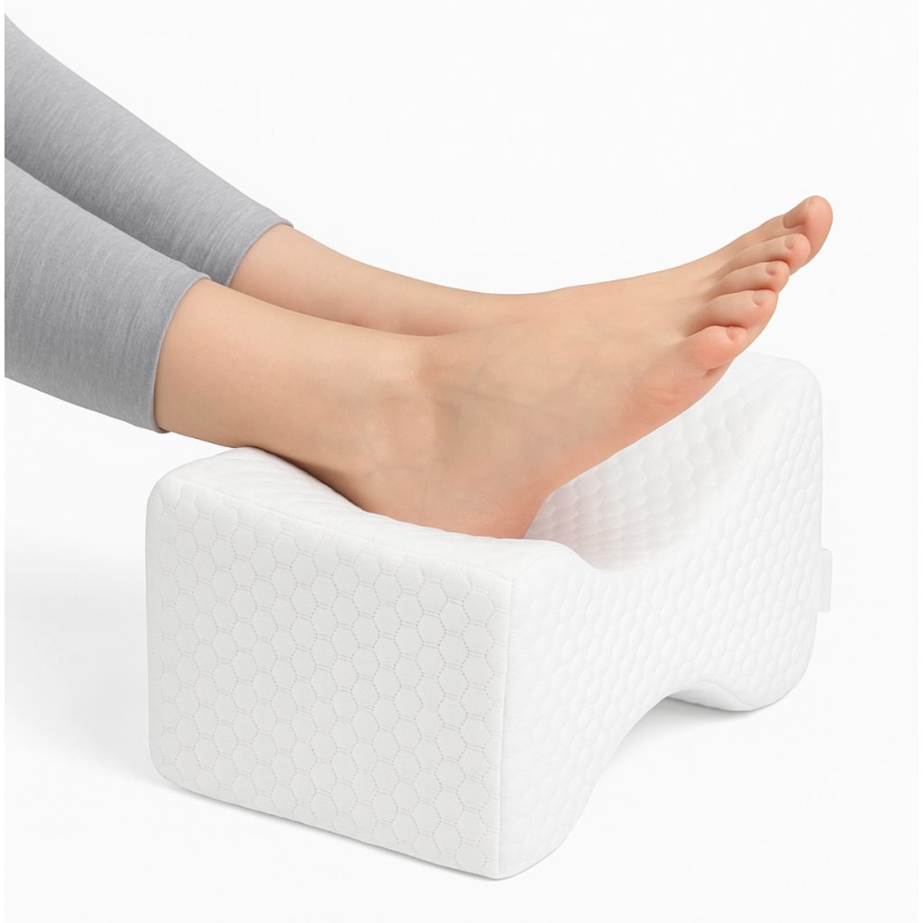 Ležanie na boku bez opory medzi kolenami často vedie k nevyrovnanej polohe chrbtice, čo spôsobuje bolesti dolnej časti chrbta, bedier aj kolenných kĺbov. Práve tu pomáha ortopedický vankúš na kolená, ktorý vytvára prirodzený rozostup medzi nohami a znižuje tlak na kĺby. Vďaka pamäťovej pene sa vankúš prispôsobí tvaru tela a drží správnu polohu aj pri pohybe počas noci. Priedušný poťah zabraňuje poteniu a je šetrný aj k citlivej pokožke. Tento vankúš je ideálny pre každého, kto chce spať pohodlnejšie, zdravšie a bez bolesti – bez potreby liekov alebo špeciálnych pomôcok.