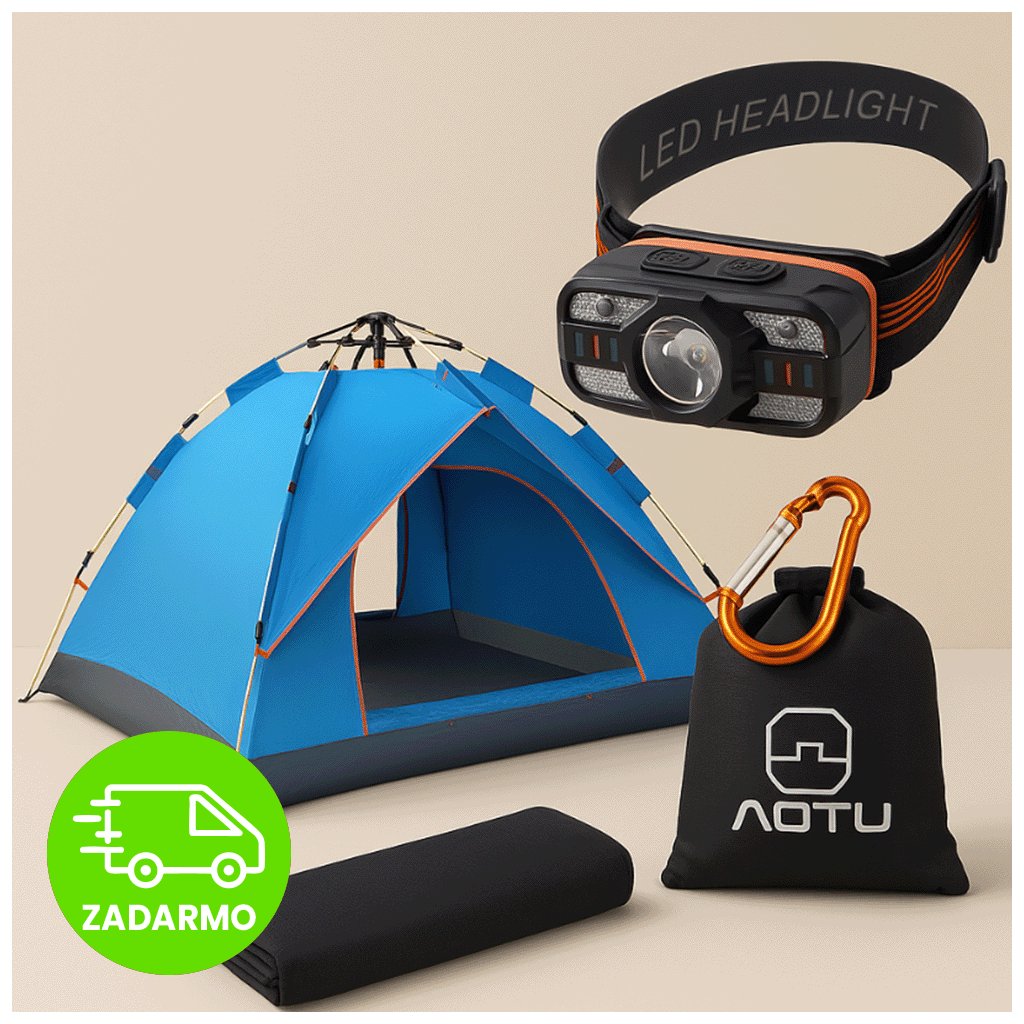 Outdoorový set na kempovanie vám prináša všetko potrebné v jednom balení. Zabudnite na zdĺhavé plánovanie a nefunkčné doplnky – tento set spája praktickosť, skladnosť a vysoký výkon v teréne. Stan sa rozloží automaticky behom niekoľkých sekúnd, čelovka ponúka silné osvetlenie aj praktické bezdotykové ovládanie a ľahká deka poskytne pohodlie aj na vlhkej zemi. Všetky komponenty sú navrhnuté pre jednoduchý transport a okamžité použitie. Outdoorový set na kempovanie je spoľahlivým partnerom pre každé vaše dobrodružstvo v prírode.