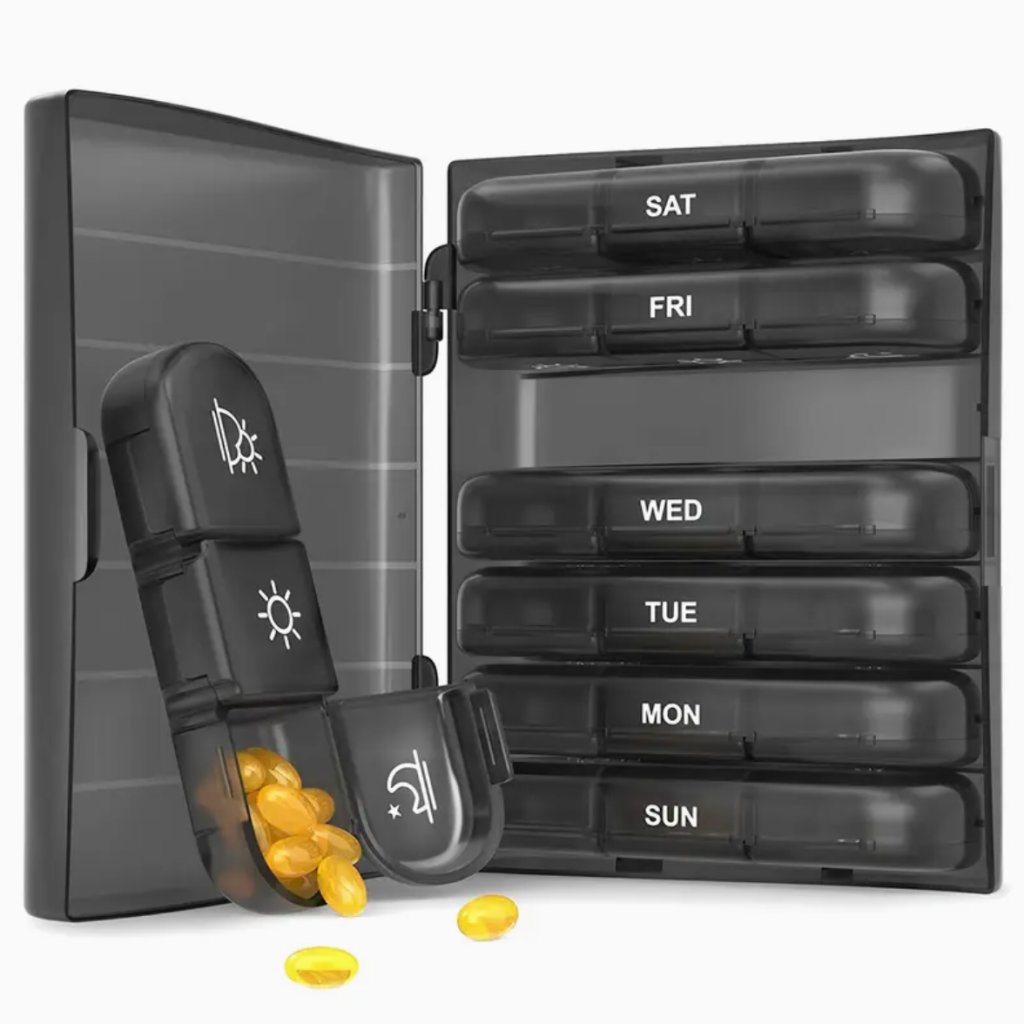 Kompaktné puzdro s magnetickým zatváraním chráni obsah pred vysypaním a vďaka decentnému dizajnu v čiernej farbe pôsobí elegantne a diskrétne. Zdravotne nezávadný plast je bezpečný pre každodenné použitie a jeho odolnosť zaručuje dlhú životnosť. Tento praktický dávkovač je ideálny pre seniorov, pracujúcich ľudí, športovcov aj častých cestovateľov, ktorí nechcú nič zanedbať.