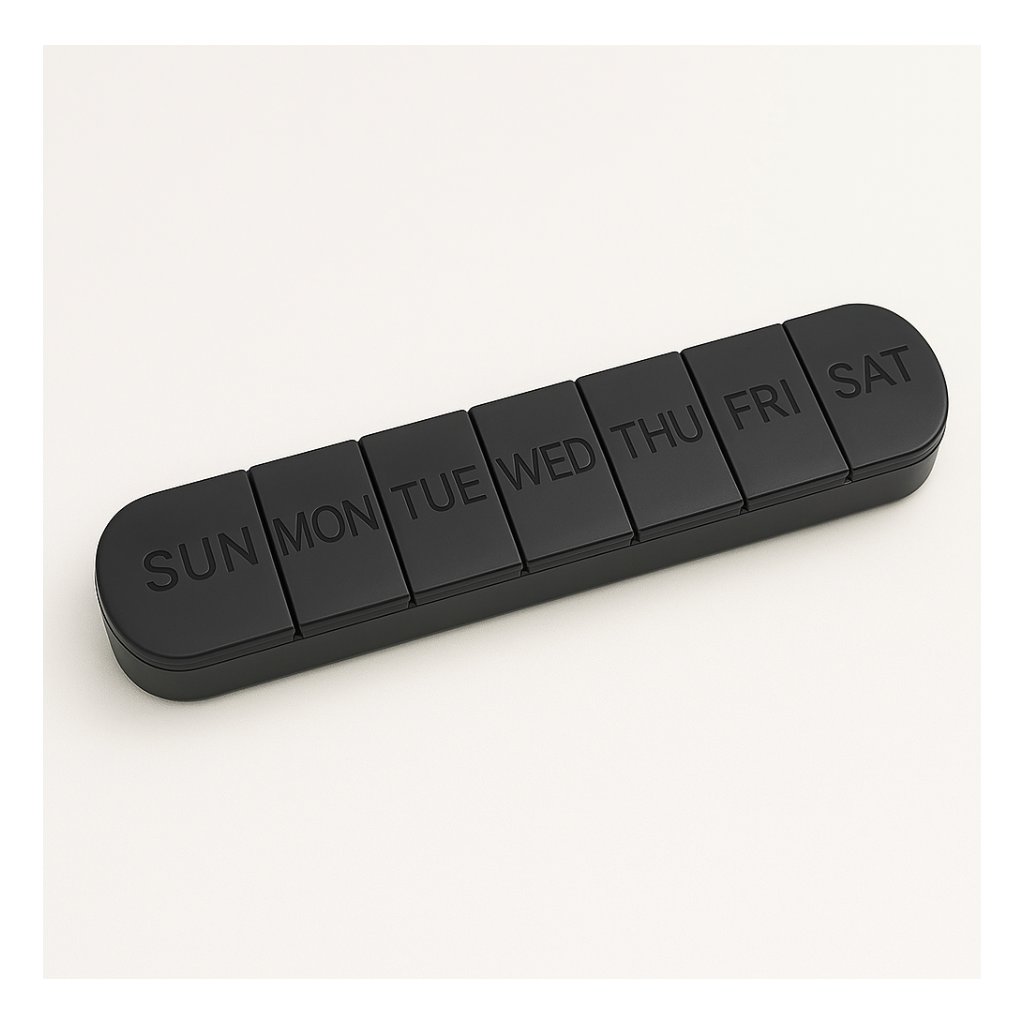 Týždenný dávkovač liekov je skvelým pomocníkom pre každého, kto chce mať svoje tabletky či kapsuly zorganizované a pod kontrolou. Vďaka rozdeleniu na 7 dní si môžete dopredu pripraviť dávky a vyhnúť sa vynechaniu alebo zdvojeniu dávky. Priehľadné viečko umožňuje okamžitý prehľad, zatiaľ čo kompaktný tvar zabezpečuje, že dávkovač pohodlne prenesiete aj v kabelke či batohu.